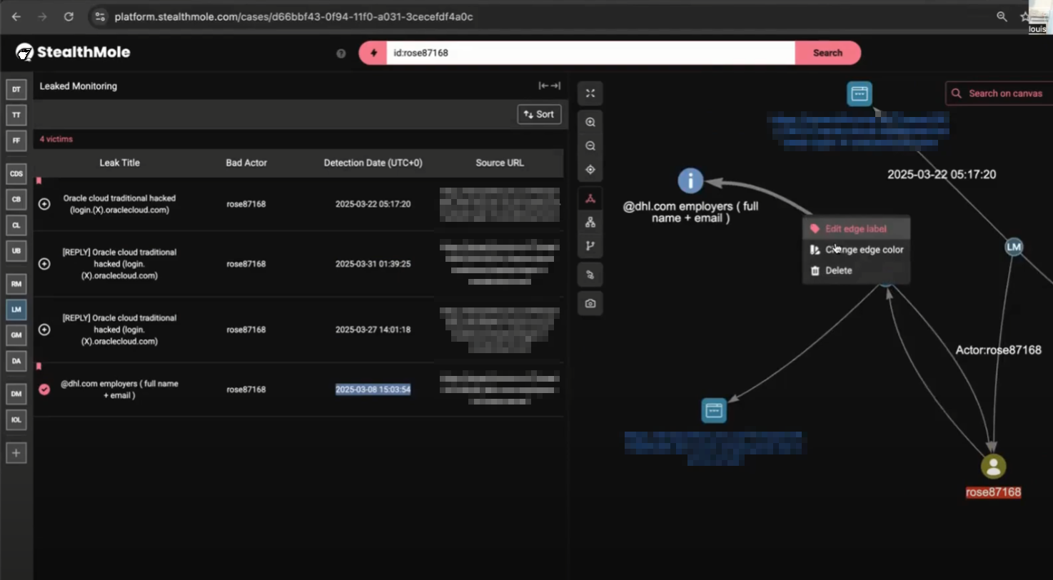 攻撃者Rose87168は、BreachForumsやHighLeaksといったダークウェブフォーラムおよびTelegramにて活発に活動しており、StealthMoleのDarkweb Tracker機能によりその行動が特定されました。