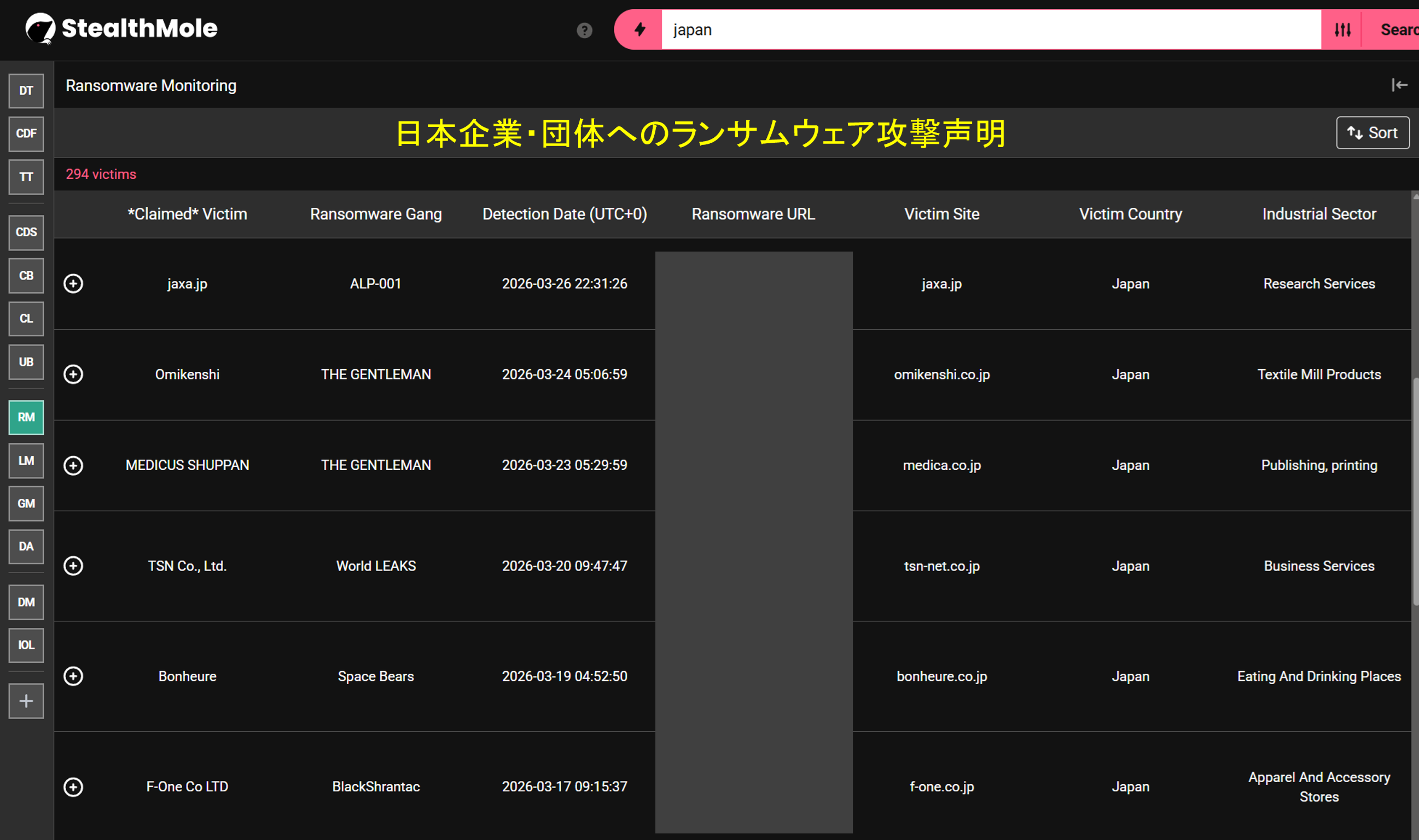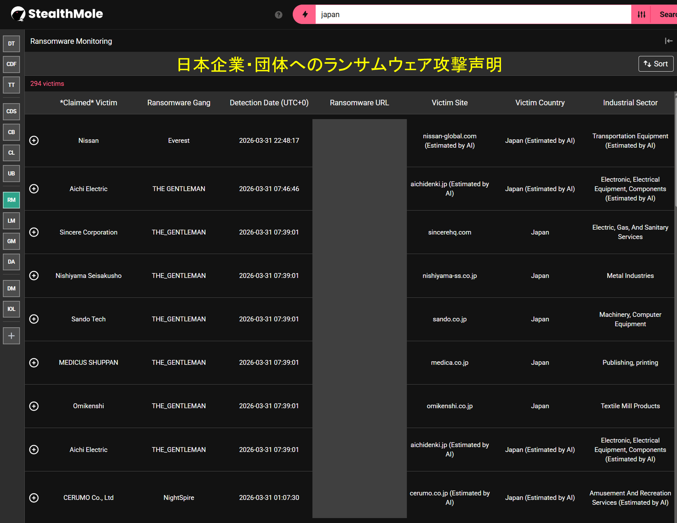 [注意喚起] 2026年3月 日本企業へのランサムウェア攻撃表明