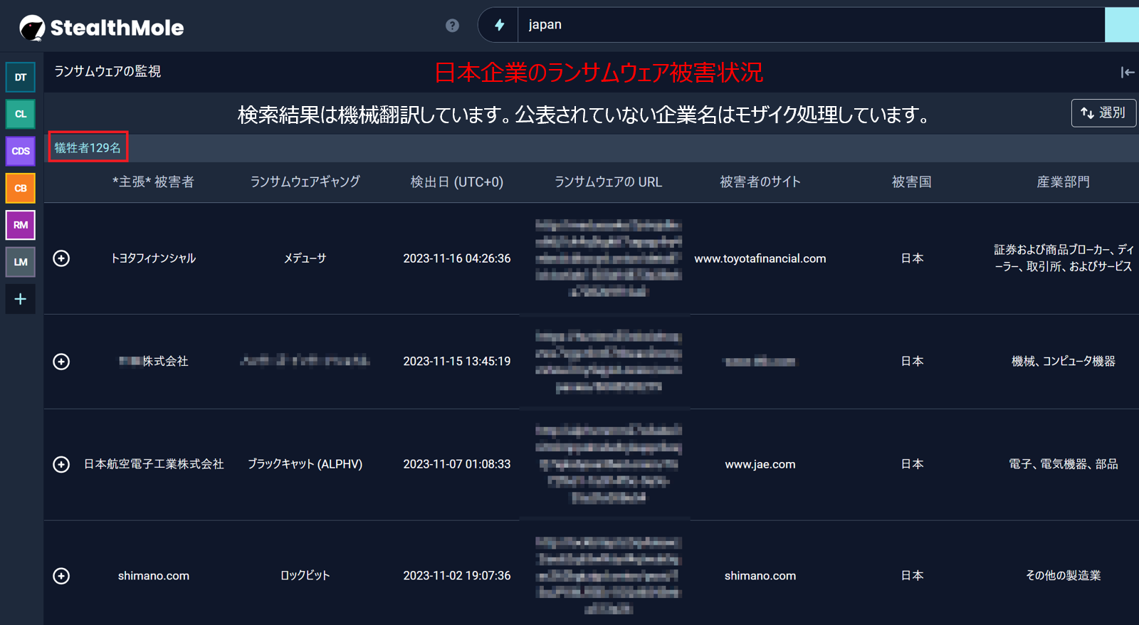 [注意喚起] 2023年11月 日本企業へのランサムウェア攻撃表明件数