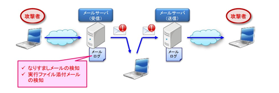 メールサーバーに残る攻撃の痕跡を検知するイメージ